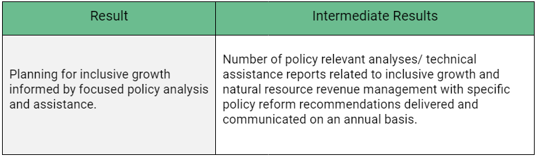 - Policy analysis on inclusive growth, including on the LNG sector.