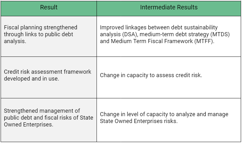 The public debt and fiscal risk management component's objective is to strengthen the GoM's public debt and fiscal risk management capabilities, while promoting transparency.